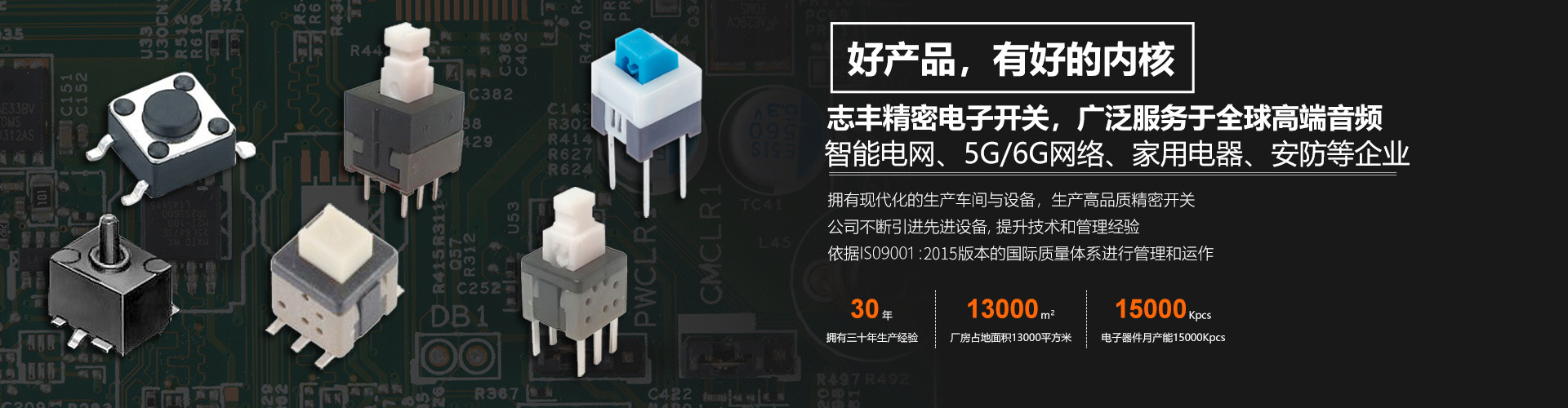 東莞演豐電子有限公司 我們是中國目前最具規(guī)模的微型開關(guān)及表面貼裝式(SMT)微型開關(guān)專業(yè)制造工廠之一,1993年創(chuàng)立于香港,1997年在國內(nèi)開設(shè)制造工廠,目前擁有東莞生產(chǎn)基地及廣西玉林生產(chǎn)基地,主要研發(fā)、生產(chǎn)低電流輕觸開關(guān)、按鍵開關(guān)、防水開關(guān)等,產(chǎn)品廣泛應(yīng)用在:5G網(wǎng)絡(luò)技術(shù)、AI技術(shù)產(chǎn)品:wifi6,無人機(jī)等。遠(yuǎn)程智能控制:智能電表儀表、安防智能系統(tǒng)。音響視聽設(shè)備:高級音響、舞臺設(shè)備及錄音設(shè)備、調(diào)音臺等。智慧生活電器:電動牙刷、個人美容保健儀及智能洗衣機(jī)、智能坐便器等。 查看詳情新聞中心